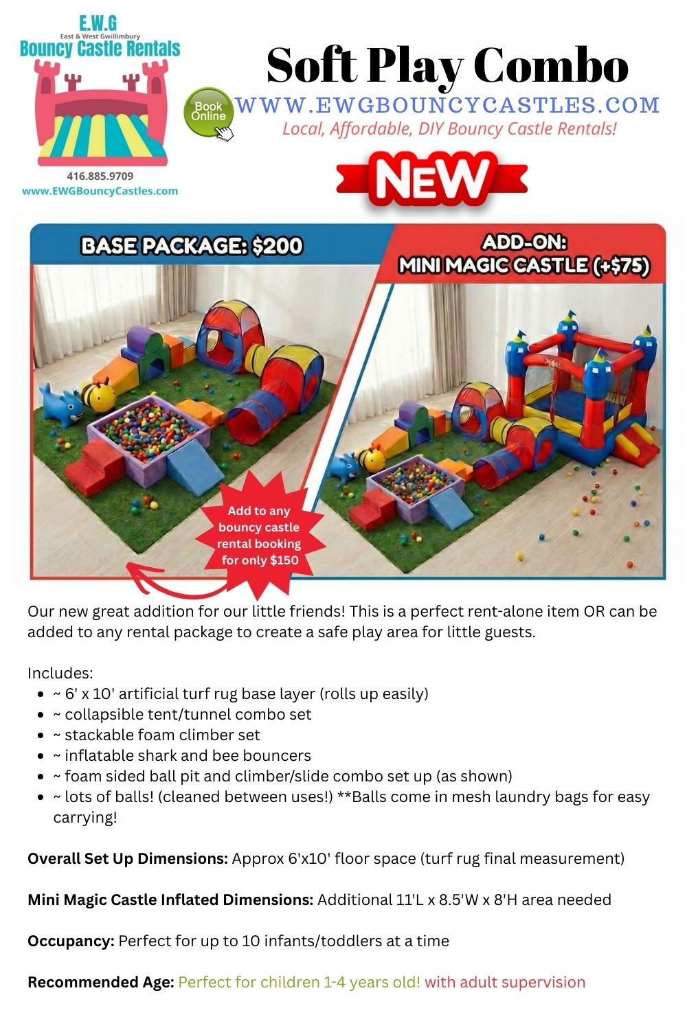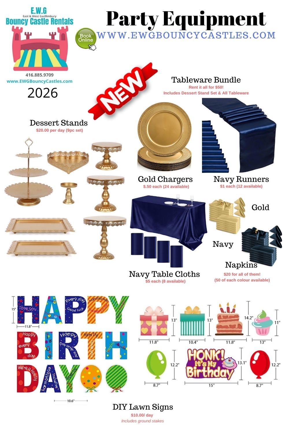 EWG Bouncy Castle Rentals offers a small selection of the most readily used party equipment items for your special event. They are curated for typical home party use for children and are meant as a DIY alternative to expensive and heavy commercial rentals.