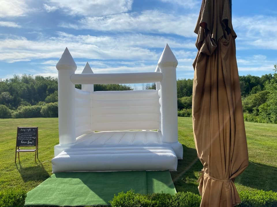 We are excited to now have an ALL WHITE commercial grade bouncy castle rental option, suitable for adults or child use! These are the perfect addition to your: