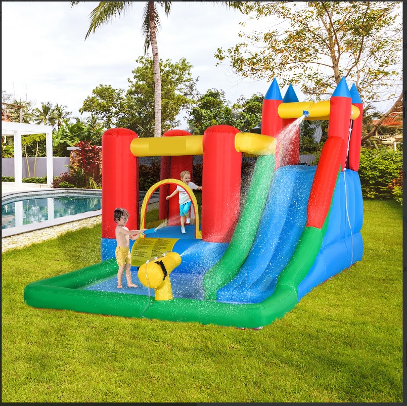 The massive splash area along with climbing, bouncer, and slide structure can accommodate up to 6 children at one time with room to spare.