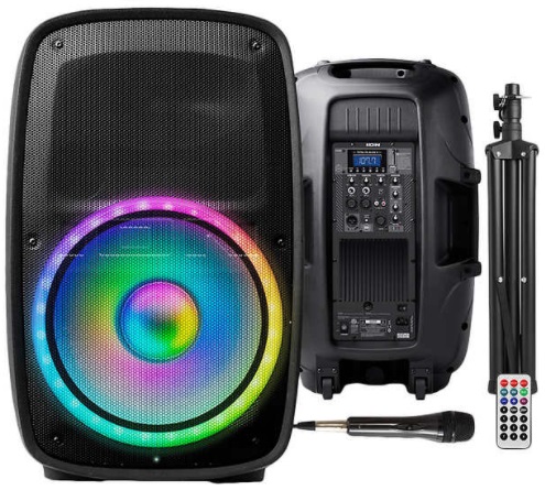 - Mega 500w Sound outdoor Bluetooth PA System speaker with built in light display, microphone, stand, remote